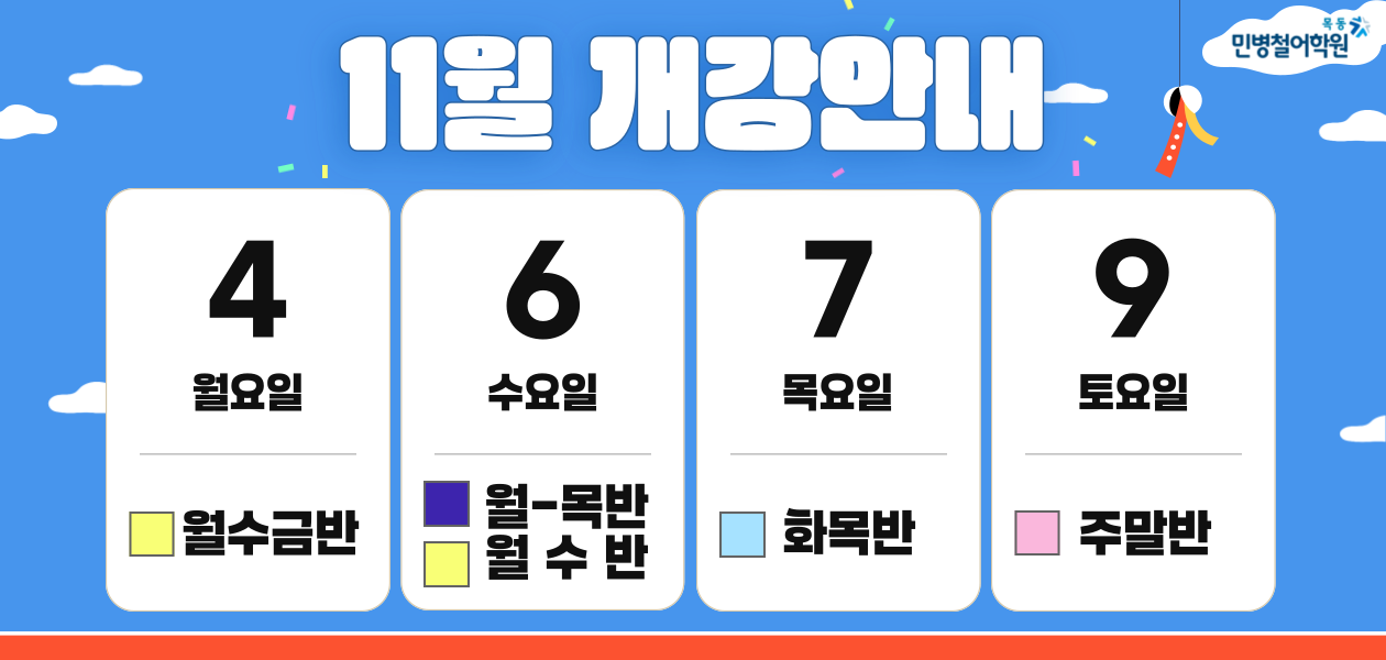 🔖 11월 6일(수) : 월~목, 월수반 개강