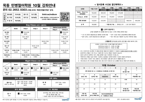 목동 민병철어학원 10월 강의일정