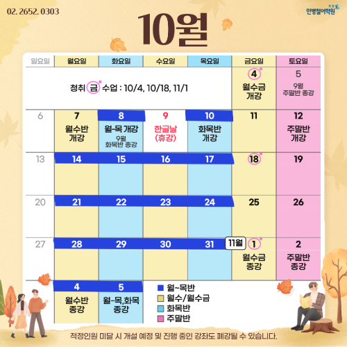 10월 강의일정 안내해드리도록 하겠습니다:)