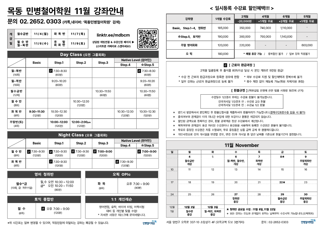 목동민병철어학원은 성인, 직장인, 주부 등을 대상으로