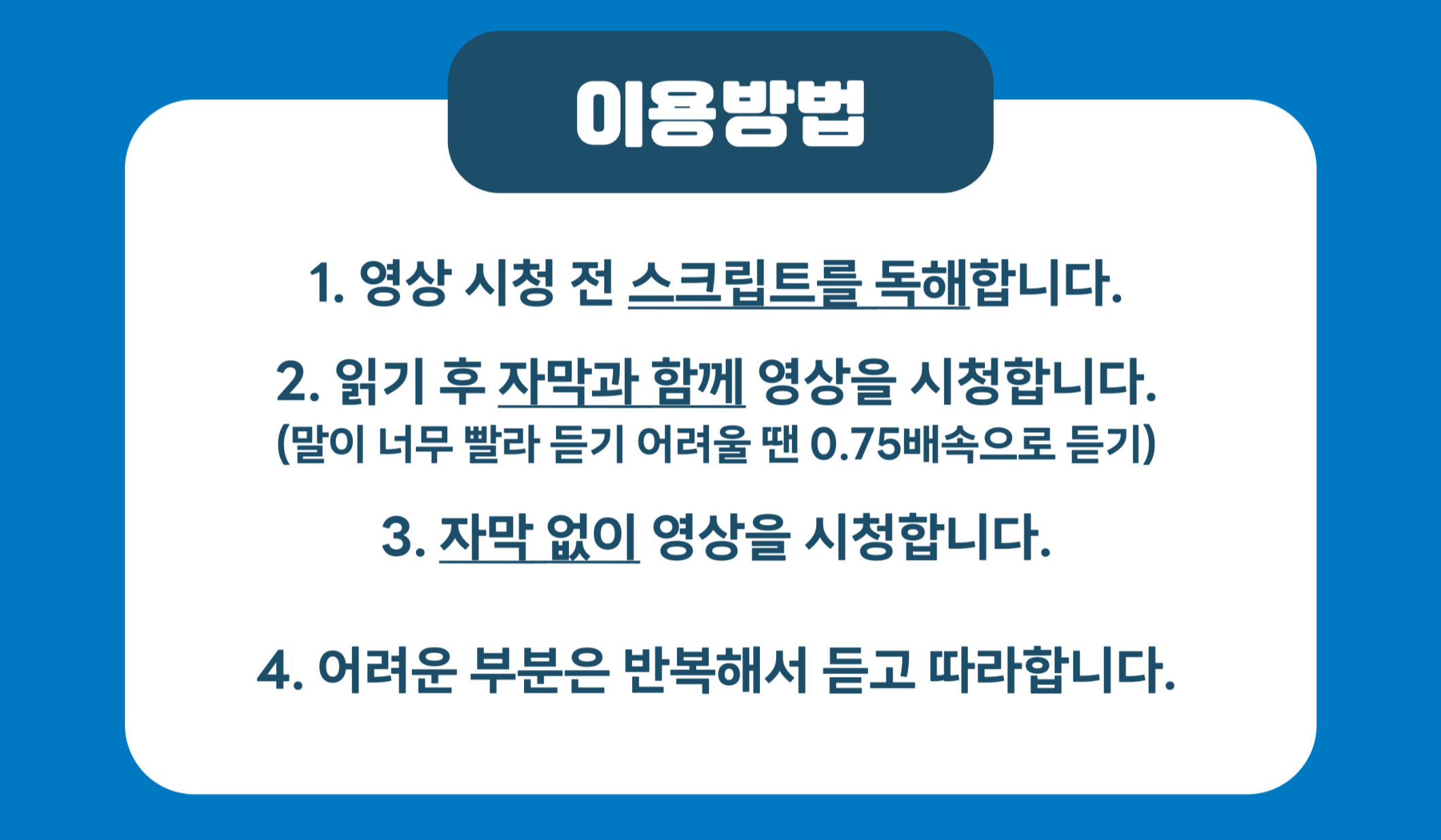 독해해보시면서 귀가 뚫리는 연습을 해보시길 바랍니다:)